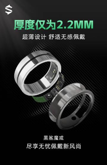 黑鲨魔戒拥有「月光银」和「炽夜黑红」两个配色,通体采用奥氏体医用抗菌金属材质,主打「超薄设计」。据宣传所示,其整体厚度仅为 2.2 毫米,重量仅为 4.4 - 5.4 克。
