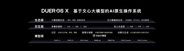而小度之所以能够拥有着如此强大的能力升级,主要还是源于 DuerOS X 在底层方面的提升。在模型层中,DuerOS X 全面应用了文心大模型,通过模型路由架构,能够灵活调度不同的文心模型去解决不同难度的问题,更高效、更精准、更经济。另外,个性化长短记忆的存储、提取和理解能力也是一个新亮点,它能更清楚地记住历史内容与用户个性化偏好,接得住你的每一次 " 考古提问 ",用户用得越多,小度就会越懂用户。