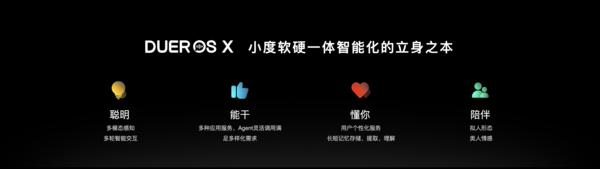 在交互层," 多模态感知 " 技术的应用,让 DuerOS X 产更丰富的感知。无论用户是通过语音、文字、还是表情来与小度沟通,它都能准确地理解你的意图,并给出恰当的回应;" 拟人化呈现 " 技术则让小度表情形象更生动有趣,声音更自然灵动,甚至能够通过动作表达出情绪和个性,让度更加具有 "" 的温度,从真正提供情绪价值与长久陪伴。