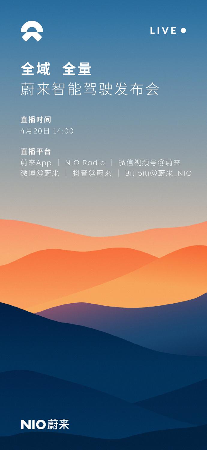 “全域全量”蔚来汽车智能驾驶发布会 4 月 20 日举行