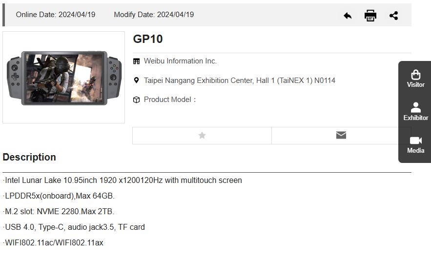 深圳微步公布 GP10 掌机将亮相台北电脑展,搭载尚未发布的英特尔 Lunar Lake