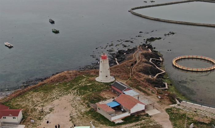 通过航拍,可以换个视角看这座小岛,岛上可以看到黑色的火山,四面环海,可以说是镶嵌在渤海湾的一颗璀璨明珠,而岛上就有一座灯塔非常鲜艳,灯塔外边延伸的栈道,海边的附近有很多黑色的火山石,不得不感叹,这真的有种冰岛的感觉了。