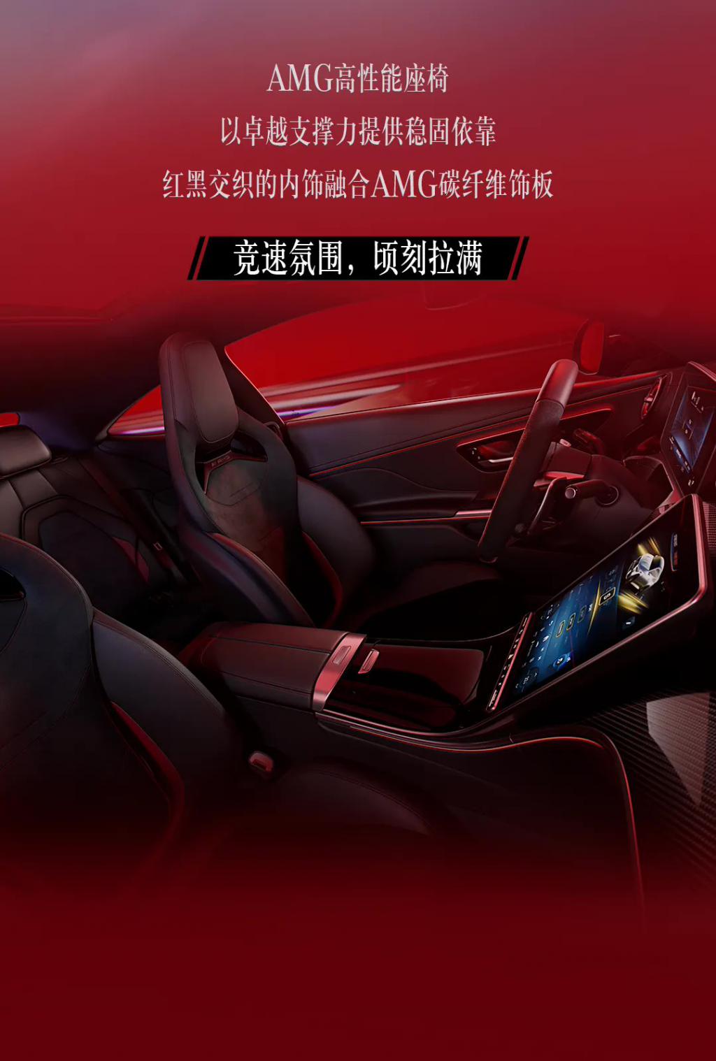 IT 之家注意到,这款车型还配备了 AMG 高性能运动座椅,具有红黑交织的内饰融合 AMG 碳纤维饰板,可以提供更好的支撑包裹性。