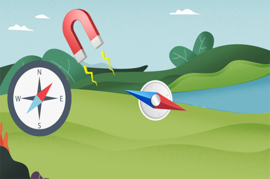 指南针也叫司南,《古矿录》记载司南最早出现于战国时期的磁山一带,其主要的组成部分是一根装在轴上阿磁针,磁针能够在天然磁场的作用下可以自由转动,同时始终保持磁子午线的切线方向上,而磁针上的南极指向地理南方向,古代人们便通过这一性能来辨别方向。