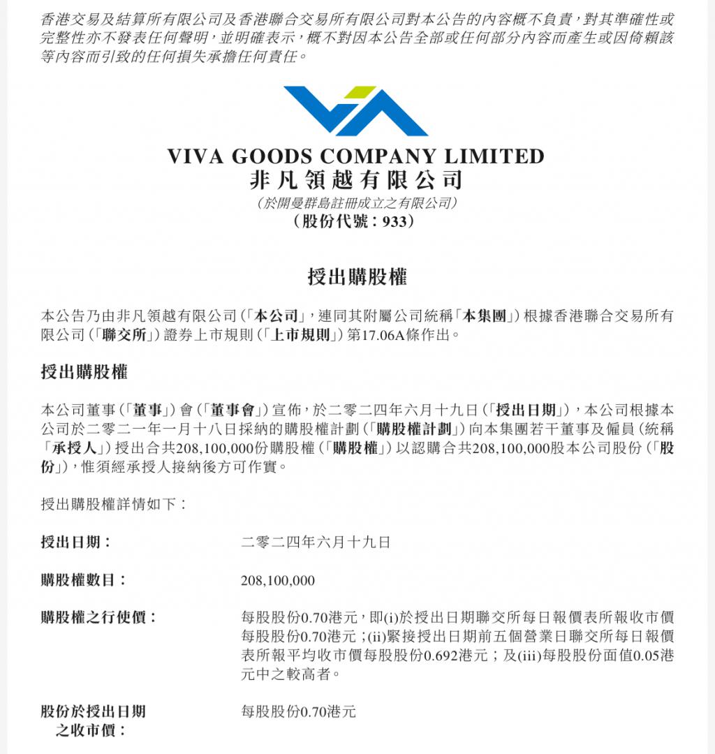 非凡领越(00933.HK)于 6 月 19 日宣布,根据 2021 年 1 月 18 日的购股权计划,向公司董事及员工授予约 2.08 亿份购股权。公告详细列出了部分购股权的授予对象,包括李宁及其侄子李麒麟,每人获得 700 万份。特别值得注意的是,李宁之子李小宁这一细节在公告中被单独列出。