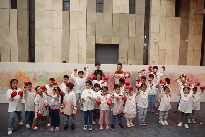 与此同时,面向青少年,江苏省美术馆还邀请专业老师为小观众们带来了一场拳击水印版画创作互动体验,活动现场主讲老师让孩子们戴上拳击手套打靶感受拳击运动勇敢积极向上的精神,并在宣纸上击打出色彩斑斓的奇妙效果,将美术、音乐、体育融合为一体,版画创作的魅力也在多重形式的表达中全新展现。
