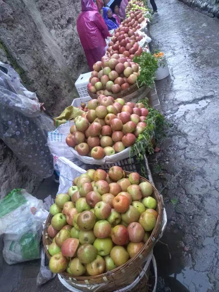 从乃拖方向往县城走,在临近县城时,会途径新民镇,镇上人多数种植苹果,据说品种也是红富士。