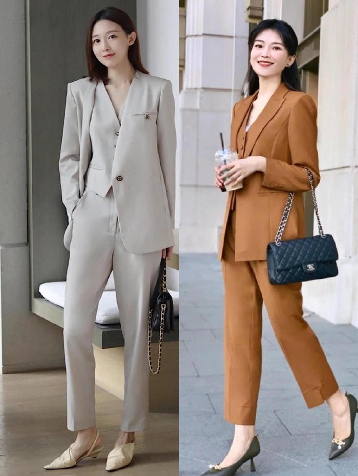面料选择也是大家会关注的一部分,如果你想要穿出时尚感,或许也可以在今年多尝试这种西装的面料,穿在身上很有垂坠感,同时也非常高级,选择这种时髦的锥形西装裤就能够直接改善我们的气质,看上去优雅又大方。