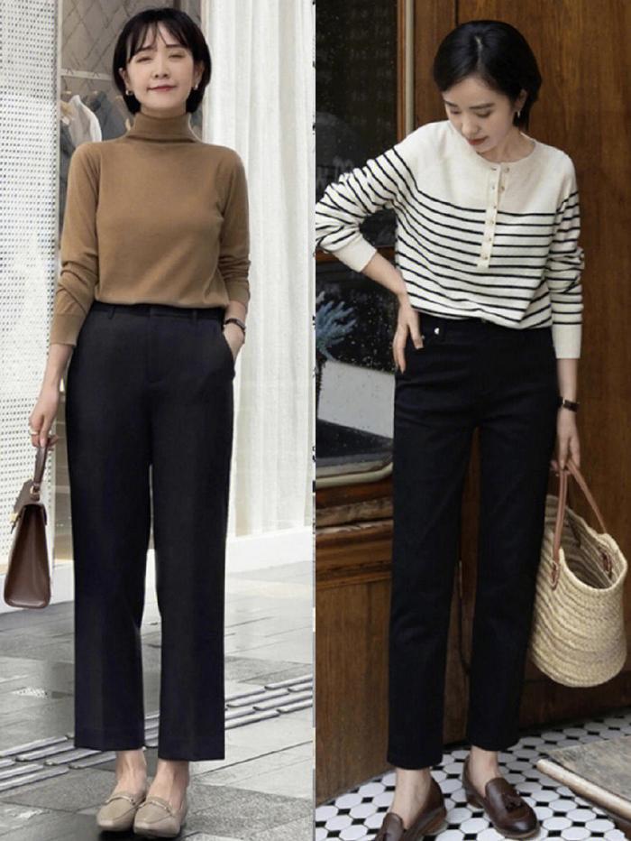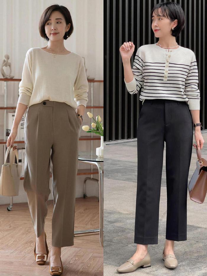 其实不管你选择牛仔裤,阔腿裤还是西装裤,我们都要记得腰线的位置要高不要低,低腰的裤子穿在身上容易导致身材55开,如果你真的想要通过穿搭增高显瘦,可以选择高腰的裤装,对于身材有更好的调节效果,选高腰的锥形裤也能够直接拉伸我们的双腿。