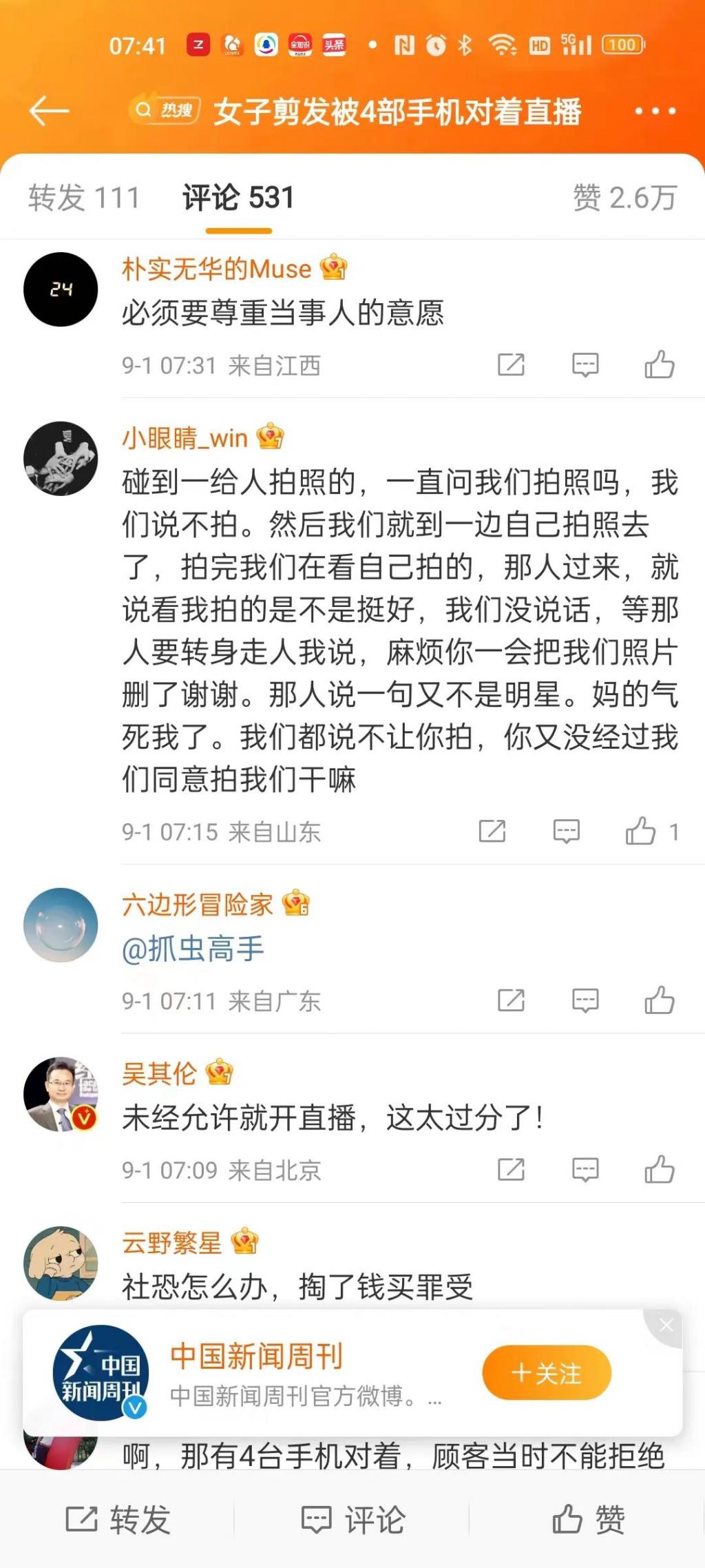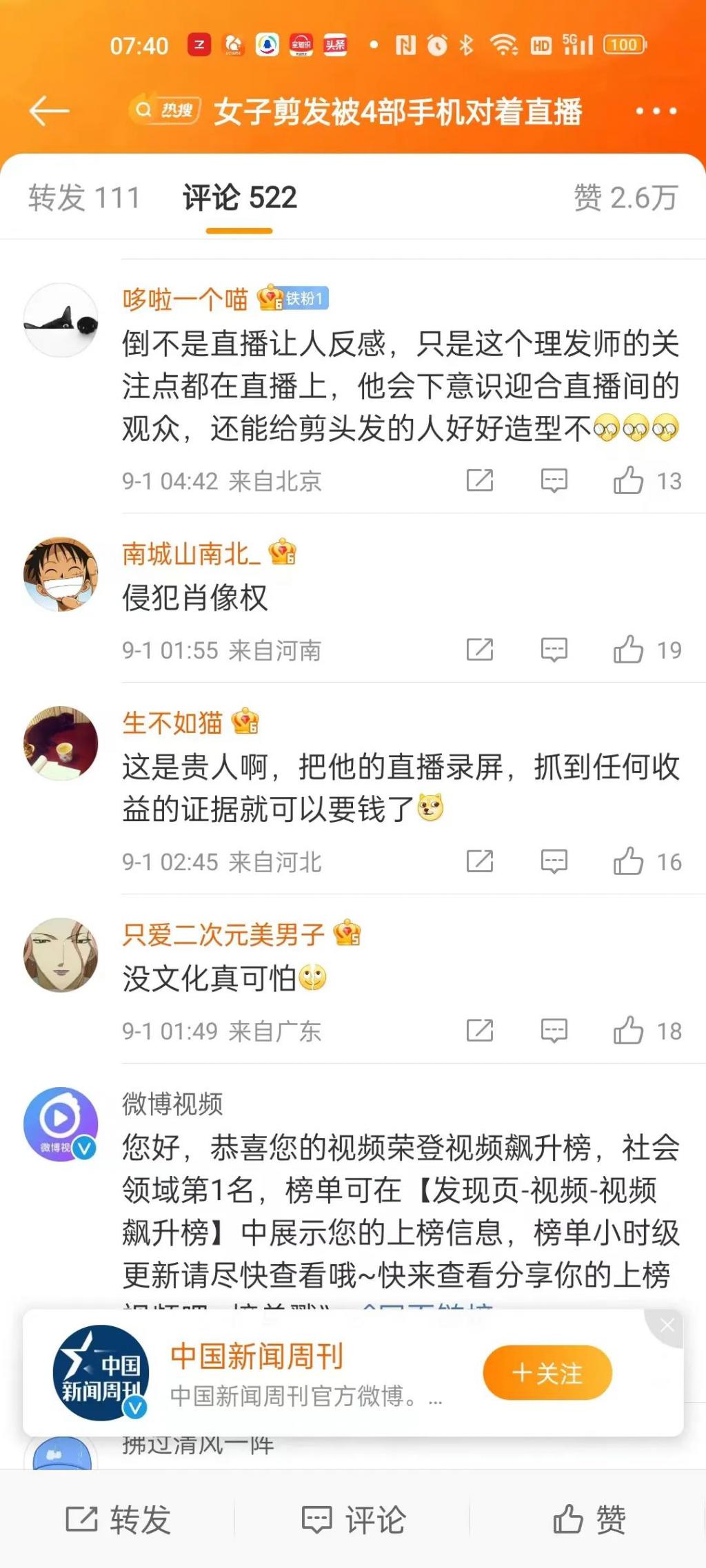 - 冲上热搜!女子剪发被 4 部手机直播,想拒绝被理发师怼“落伍了”