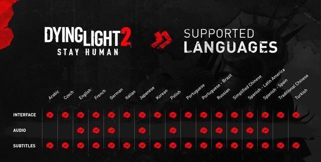 消逝的光芒2 Dying Light 2中玩家们身后随时可能跳出来丧尸,与之殊死搏斗才有可能赢得生存下来的机会。在崩溃毁灭的城市之中,玩家们可以任意选择一个阵营加入,决定自己要走什么样的路线。这款游戏不久就要正式解锁,吸引来不少玩家注意。玩家们想知道这款游戏有没有中文,下面小编就来为大家解答疑惑。