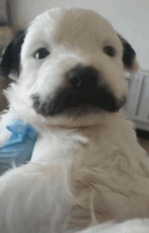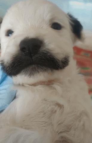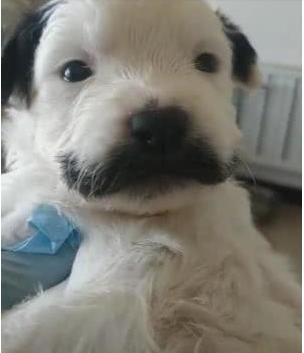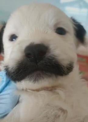 小狗崽长了一幅黑胡子,抬头卖萌,单眼皮瞧着秀气