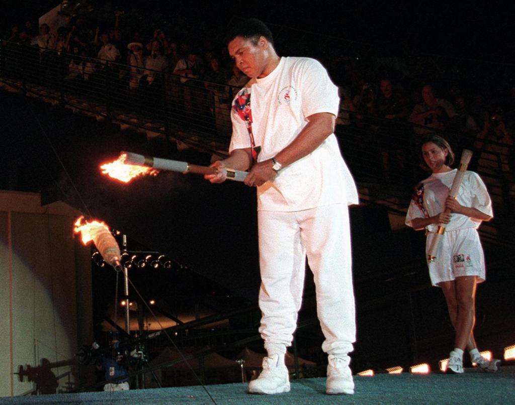 1996 年亚特兰大奥运会,拳坛传奇人物、" 拳王 " 穆罕默德 · 阿里成为了点火仪式的主角。已于帕金森症斗争十几年的阿里颤抖着双手接过火炬,在举起了火炬后,虽然左手依然因病颤抖,但举着火炬的右手依然像当年在擂台上那样的稳。随着现代奥林匹克运动会的百年圣火被点燃,这一刻的拳王阿里,让全球观众为之动容。拳王阿里的坚韧与不屈,正是代表了体育精神。这次点火仪式也成为了奥运史上最令人动容的一次。