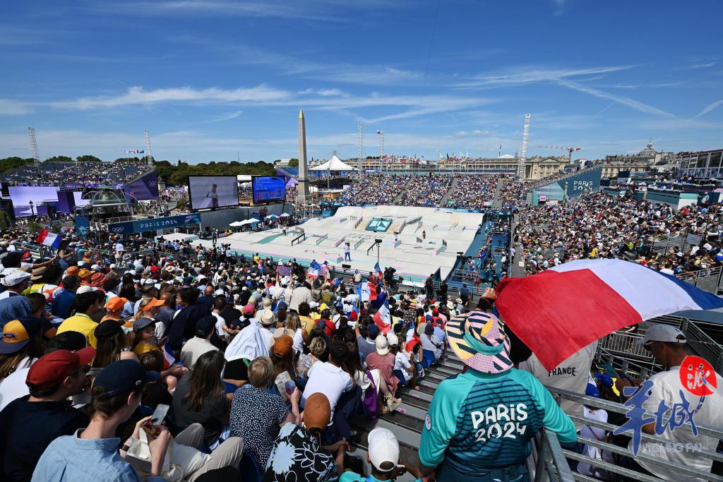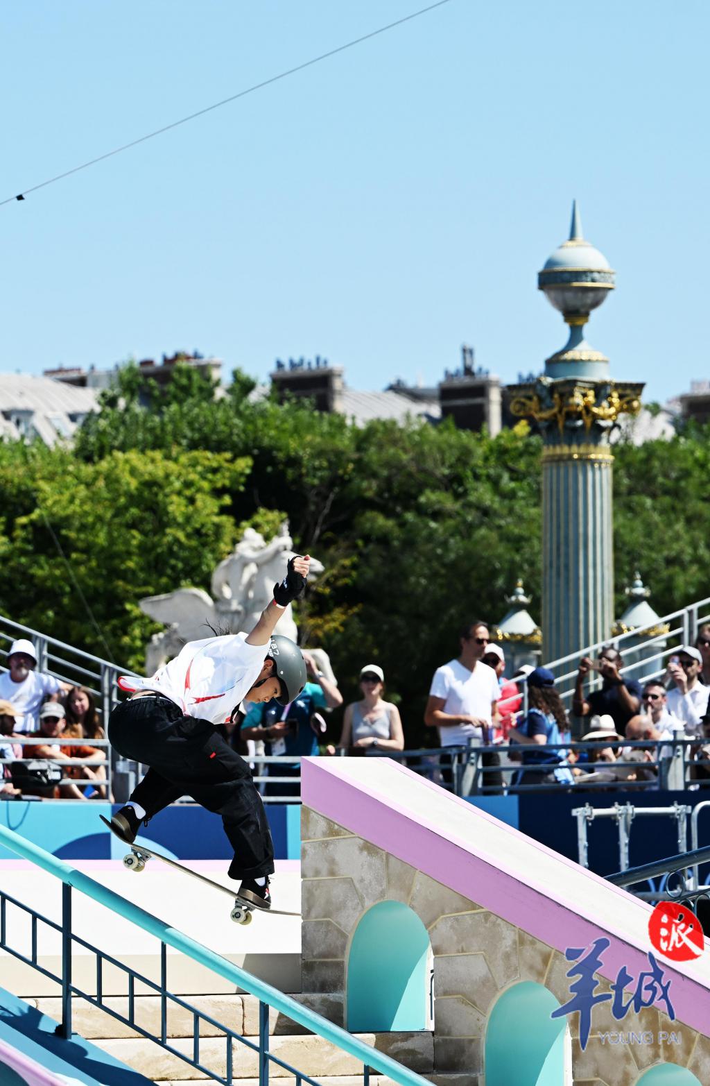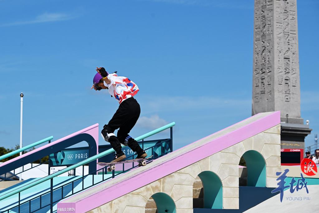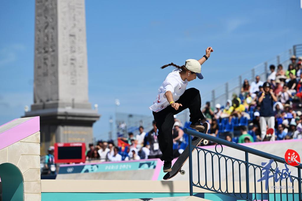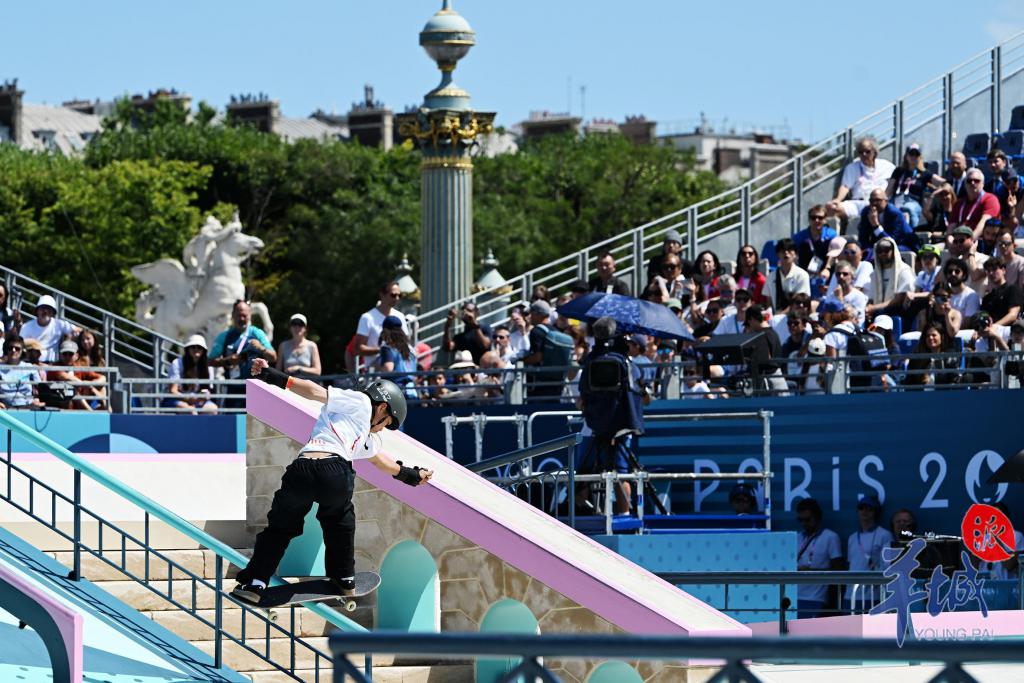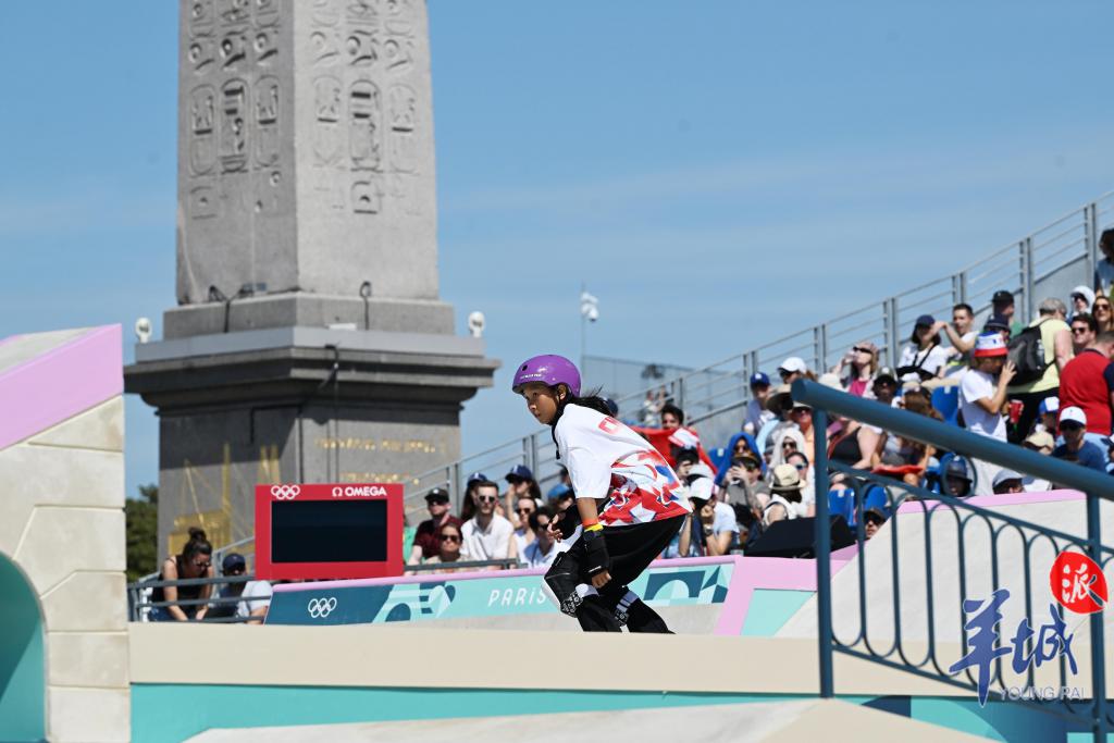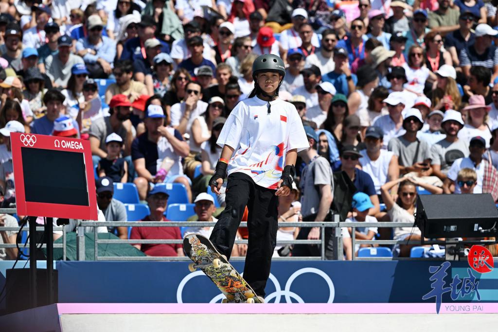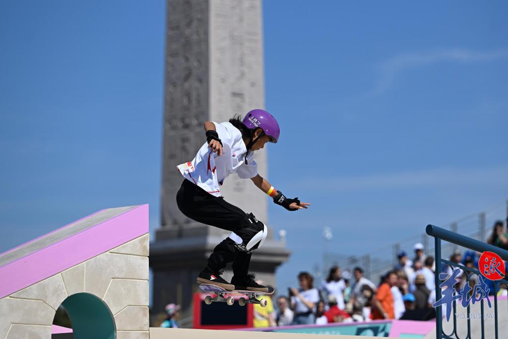 7 月 28 日,2024 巴黎奥运会滑板女子街式赛预赛,来自中国的 14 岁小将崔宸曦以 254.34 分的成绩排名第三,晋级决赛。另两名中国选手,朱沅铃位列第 9,曾文蕙位列第 12,未能获得晋级机会。