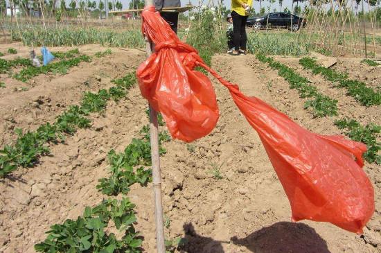 在菜地周围立几根竹竿,把颜色鲜艳的袋子挂在竹竿上可以驱赶麻雀。可以将袋子撕成一条一条的再绑,如果菜地的面积比较大,可以多立几根竹竿。