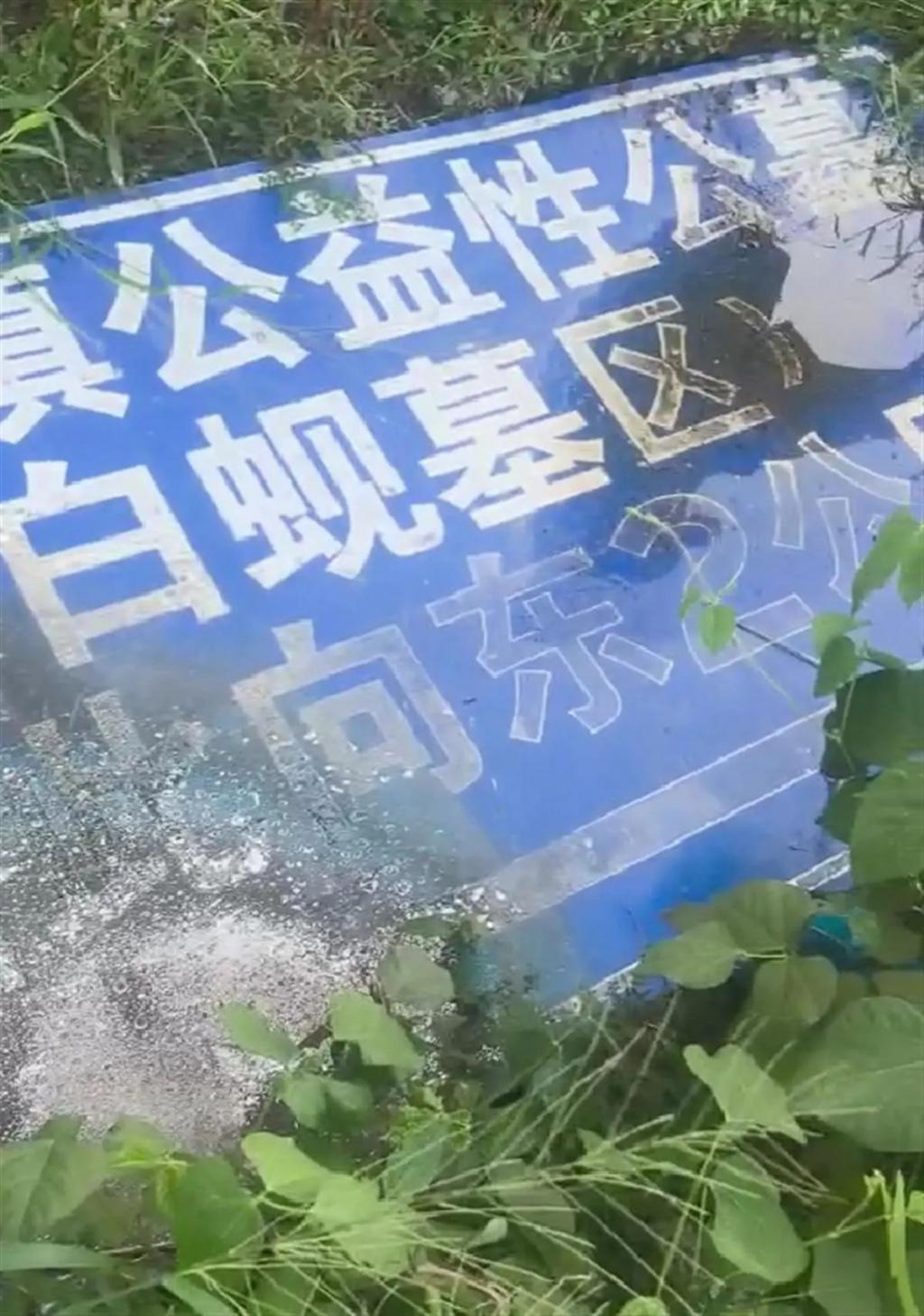 王洪凯安葬父亲的白蚬公墓指示牌(视频截图)