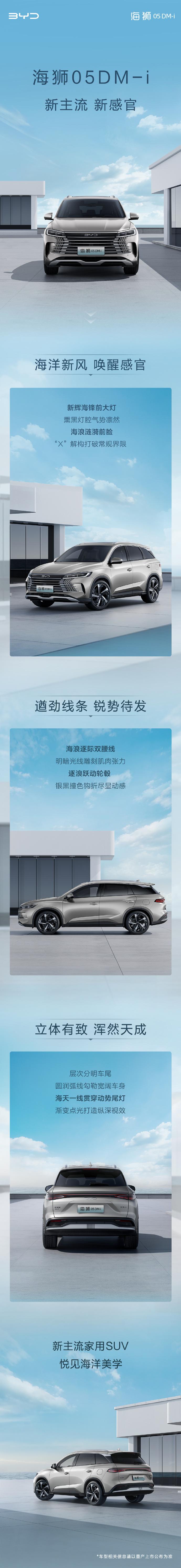 比亚迪海狮 05 DM-i 官图公布,海洋家族前脸设计