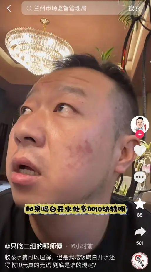 9 月 8 日,有网民发布视频称,原本准备在甘肃兰州一家饭店就餐,坐下后被服务员告知,若需要茶水,会另收 10 元茶水费 / 每位,喝白开水也收钱。