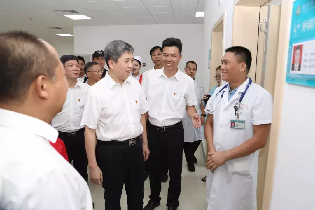 ▲市委书记黄晨光、市长朱春保在院长陈荣海陪同下到现场指导工作