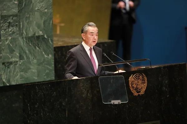 当地时间 2024 年 9 月 28 日,中共中央政治局委员、外交部长王毅在纽约联合国总部出席第 79 届联合国大会一般性辩论,就台湾问题阐述中方立场。