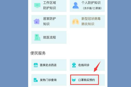 进入主页之后,在主页的“健康”栏目下方找到“疫情防控服务”,点击“疫情防控服务”之后进入网上服务的页面,下拉找到“便民服务”,点击右下角的“口罩购买预约”即可,注意目前预约口罩需要实名认证,否则无法预约。