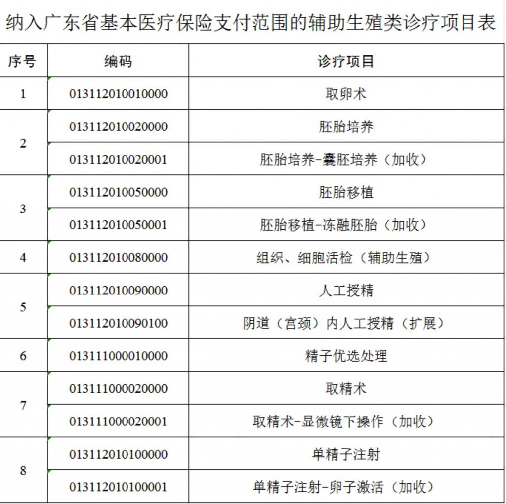据了解,2024 年 10 月 1 日起,广东省将 " 取卵术 "" 胚胎培养 "" 胚胎移植 "" 组织、细胞活检 "" 人工授精 "" 精子优选处理 "" 取精术 "" 单精子注射 " 等 8 个不孕不育辅助生殖技术治疗项目纳入医保报销范围。当天多家医院试管婴儿助孕治疗费用获得医保报销。