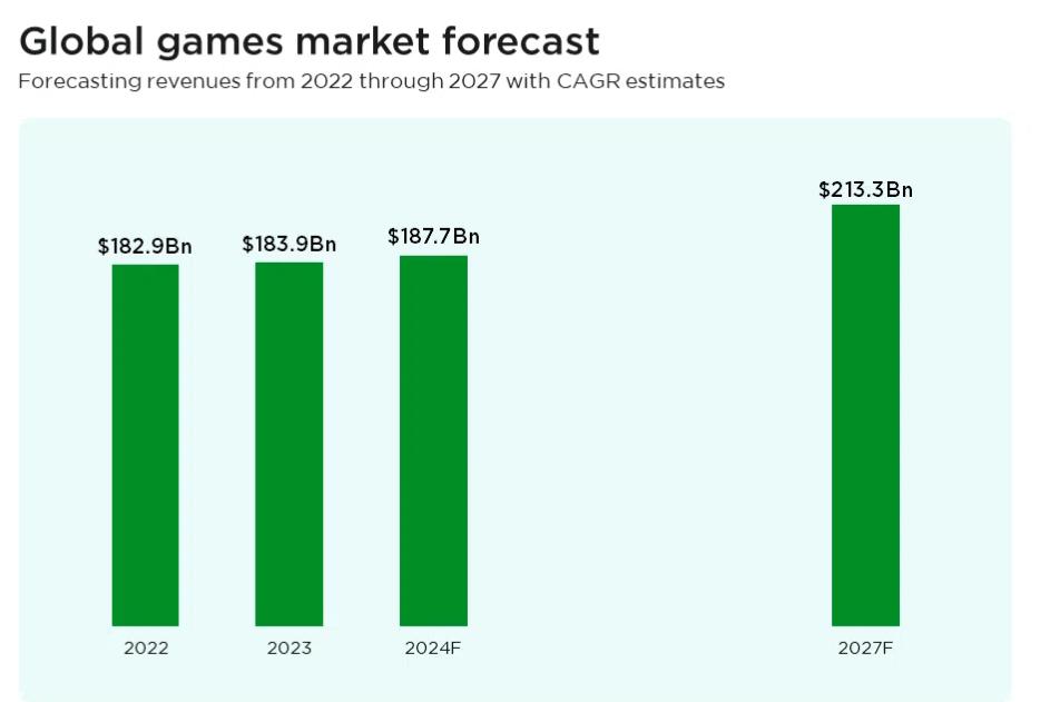 除了《刺客信条》的跳票,育碧还要应对整个游戏行业的低迷。研究公司 Newzoo 预计,2024 年全球游戏市场同比增长率仅为 2.1%,远不及 2020 年和 2021 年新冠初期的迅猛增长水平。
