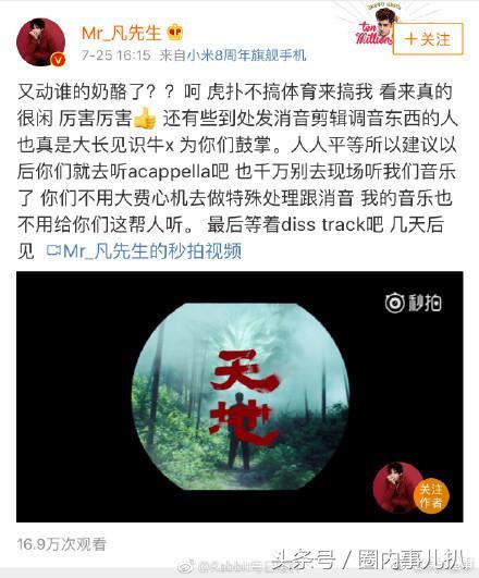 所以说这次真的太过分了,就像吴亦凡说的:“我的音乐不用给你们这帮人听!”喜不喜欢他随意,不想听他的音乐可以不听,不想看他可以不看,但是用经过消音、剪辑、调音的视频来蓄意黑一个人真的太低级了!