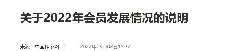 9 月 2 日,中国作家网发布《关于 2022 年会员发展情况的说明》,全文如下: