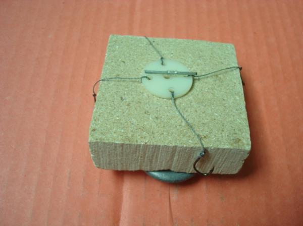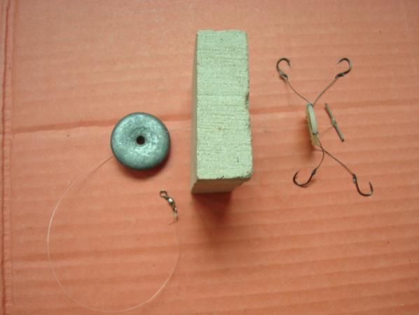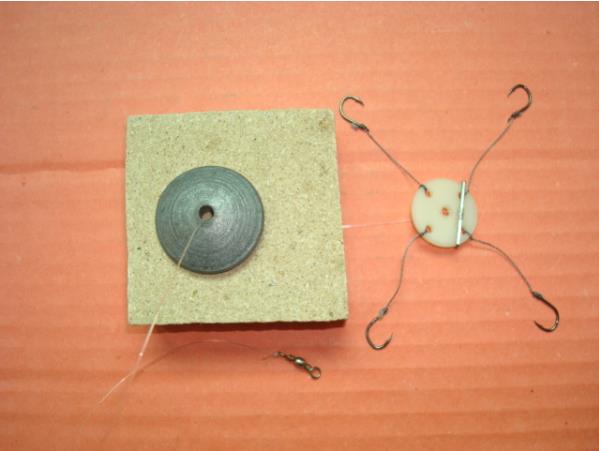 好档杆后,先穿过铅坠,然后依次是糠饼、翻板钩
