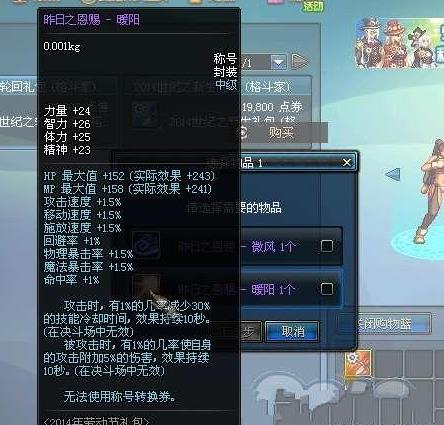 当年劳动节礼包能够获得的称号,玩家们都知道,每个活动礼包的价格都有两种不同价位给大家选择的。昨日之恩赐在攻击时有1%的几率减少30%技能CD,而被攻击时有1%的几率附加5%的伤害!