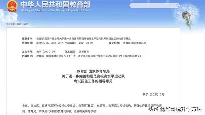 同时教育部对高水平运动队的考试招生工作也做了调整:从2024年起,高水平运动队的招生条件为获得国家一级运动员及以上技术等级称号者才可以报名。现有的政策为国家二级运动员且在省级比赛中获奖就可以报名。而且对考生的成绩和录取专业也有一定的要求。改革明显提高了对高水平运动队的要求。以后通过这条路径进入大学的难度进一步加大。
