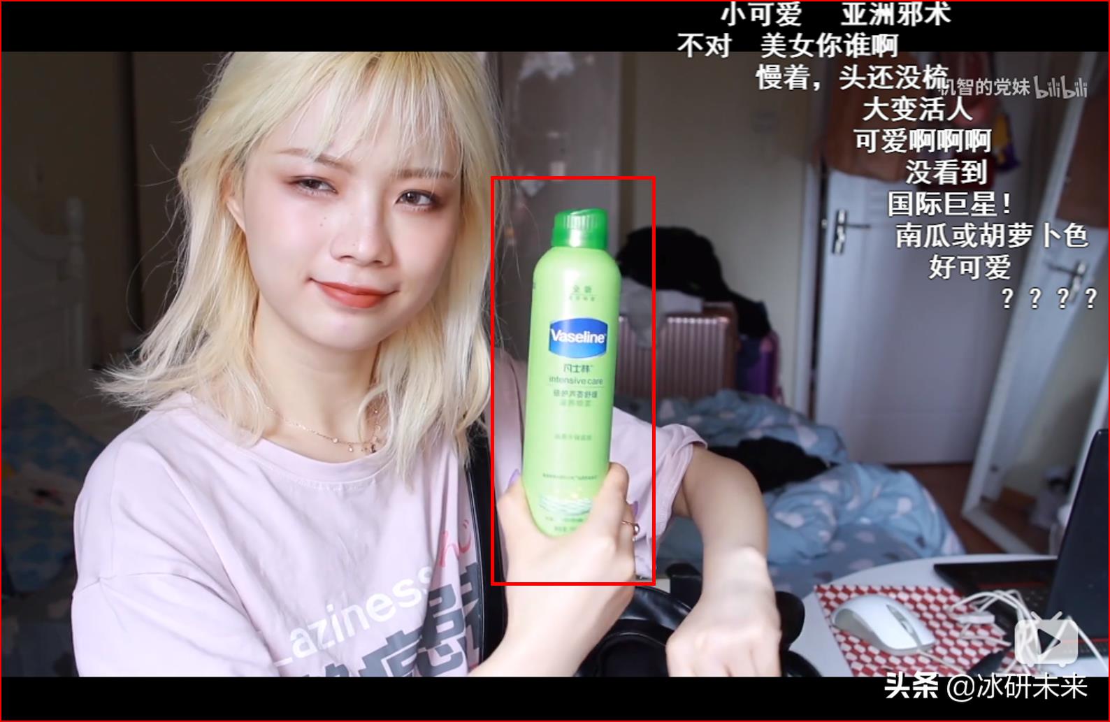正如上图所示,高人气美妆UP主机智的党妹手中拿的产品正是广告信息流。
