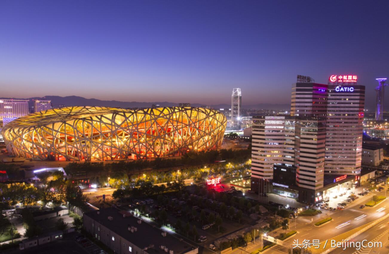 远远望去,“鸟巢”灯光绚丽,似夜幕里一颗硕大的暖光宝石。金光闪耀的“鸟巢”让北京的夜色多了点紫色。