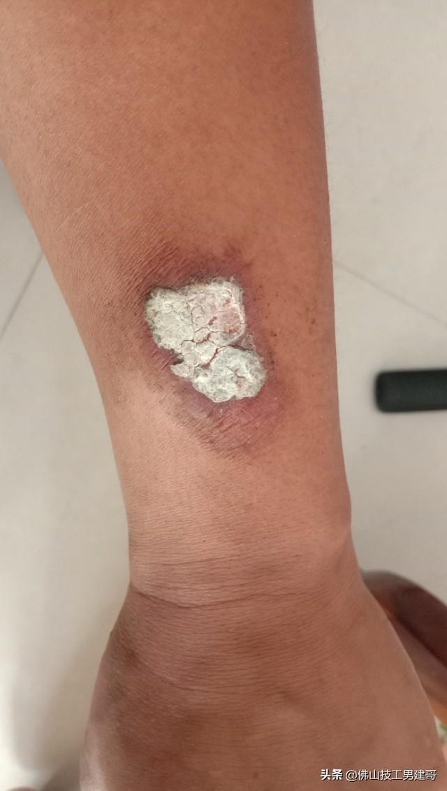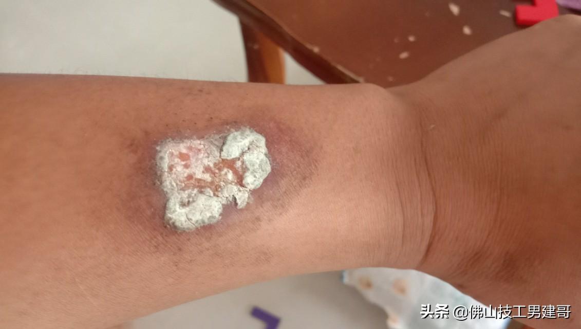 第四天早上的伤口,情况更糟糕,又碰掉一大层块白色物体,估计又要迟几天愈合。