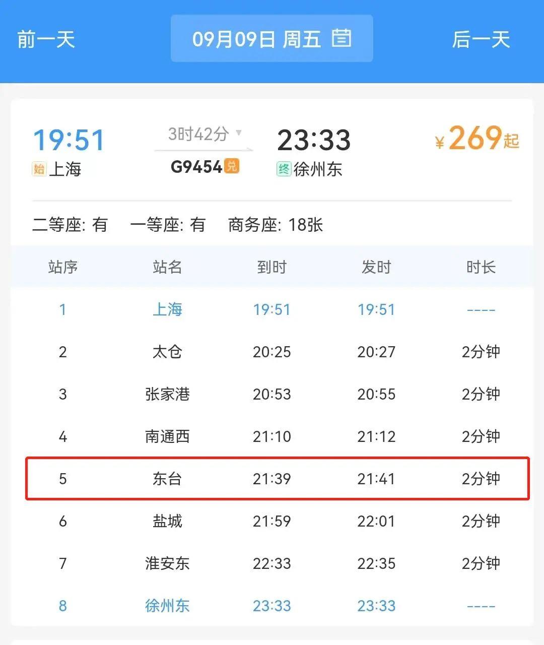 上海-徐州东G9454