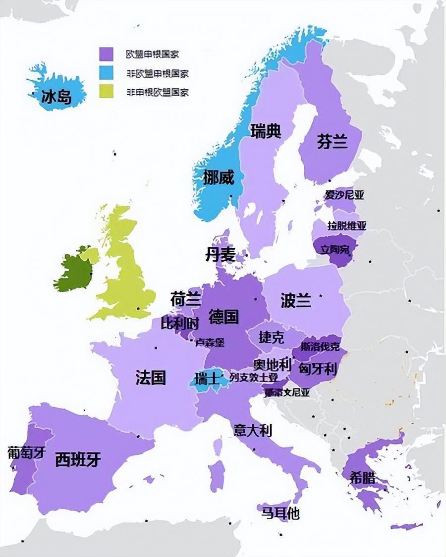 申根国家示意图