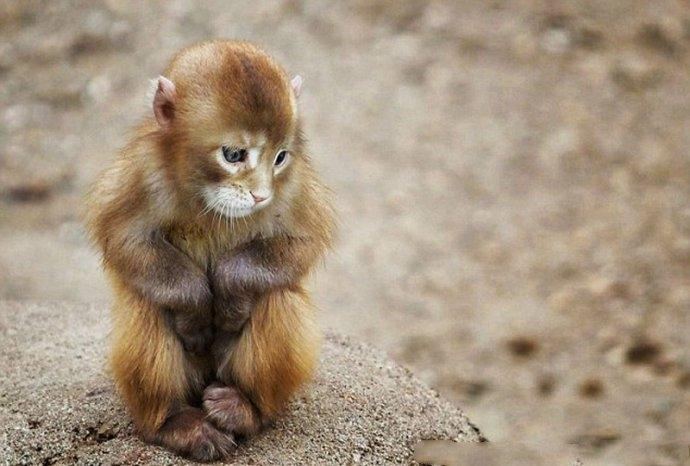 一只看上去像小猴子却长着一张猫咪脸的小“猫猴”蹲在地上,我都快忘了猴子本来长什么样了。