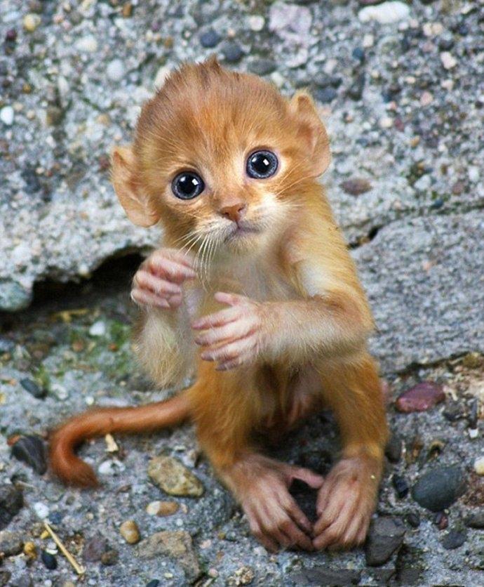 杂交出了拥有猫的天使脸蛋,和猴子灵活身体的“猫猴”。