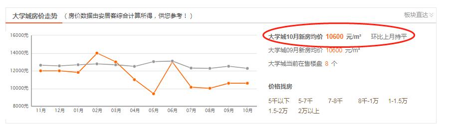 大学城新房的价格非常稳定,现在建面1万/平左右,新房市场很难再出现暴涨暴跌的局面,但是未来大学城的规划落实,难免会引发开发商和房产销售集体操作。