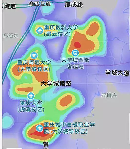 再看今天的大学城,热闹非常,我是不愿没事去那边,一个字,堵,真的是车太多了,特别堵车。看看现在大学城的热力图,已经极具人气了。
