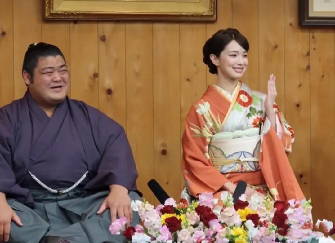 他是相扑界的泰斗级人物,段位达到横纲级,年纪轻轻就娶了美娇妻