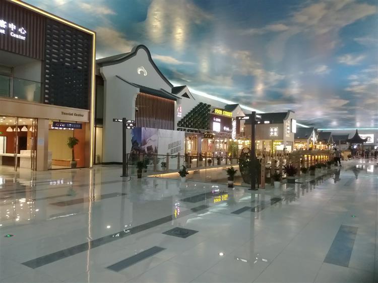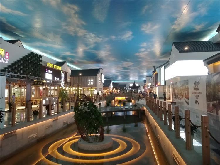 在这里用餐让你有一种置身于江南水乡的感觉,小桥流水,蓝天白云(头顶3D大屏),打造各种小园林景观,让你有一种步随景移,一步一景,就像是行走在苏州的老街上 ,但是饮食大部分又是引进的连锁餐饮,满足味蕾的同时欣赏了苏州园林的一角。