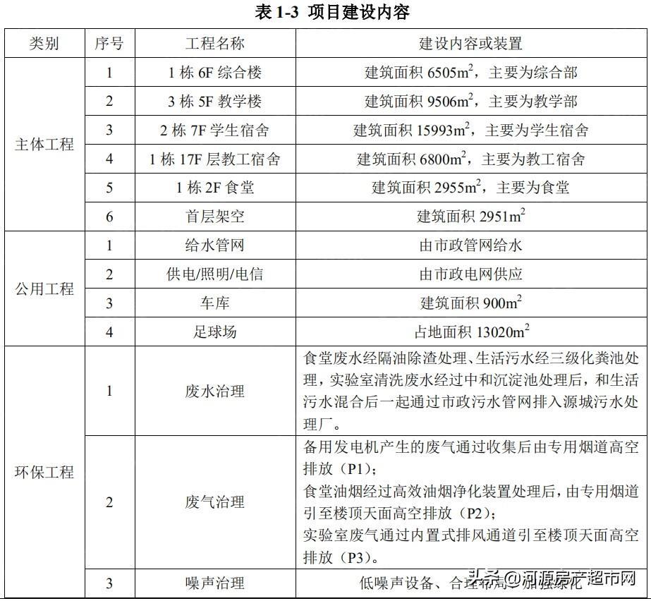 项目总投资 16500 万元,总占地面积 37295.08m2,总建筑面积 45610m2,主要建设建设 1 栋 6 层的综合楼、3 栋 5 层教学楼、2 栋 7 层学生宿舍、1 栋 17 层教师宿舍、1 栋 2 层食堂;地下停车库、架空层、足球场等建筑。