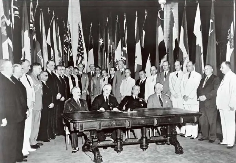 自1942年1月,中美英苏等26国在华盛顿签订《联合国家宣言》,中美两国成为盟友,互相支持,携手作战,最后取得第二次世界大战的胜利。