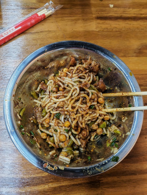 下午吃海鲜吃多了。晚上在镇上找到了一家桂林米粉。原来桂林米粉是干拌的。
