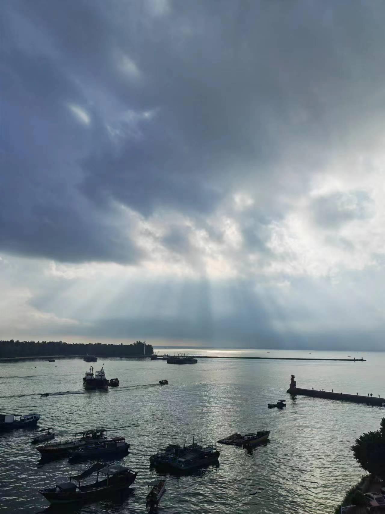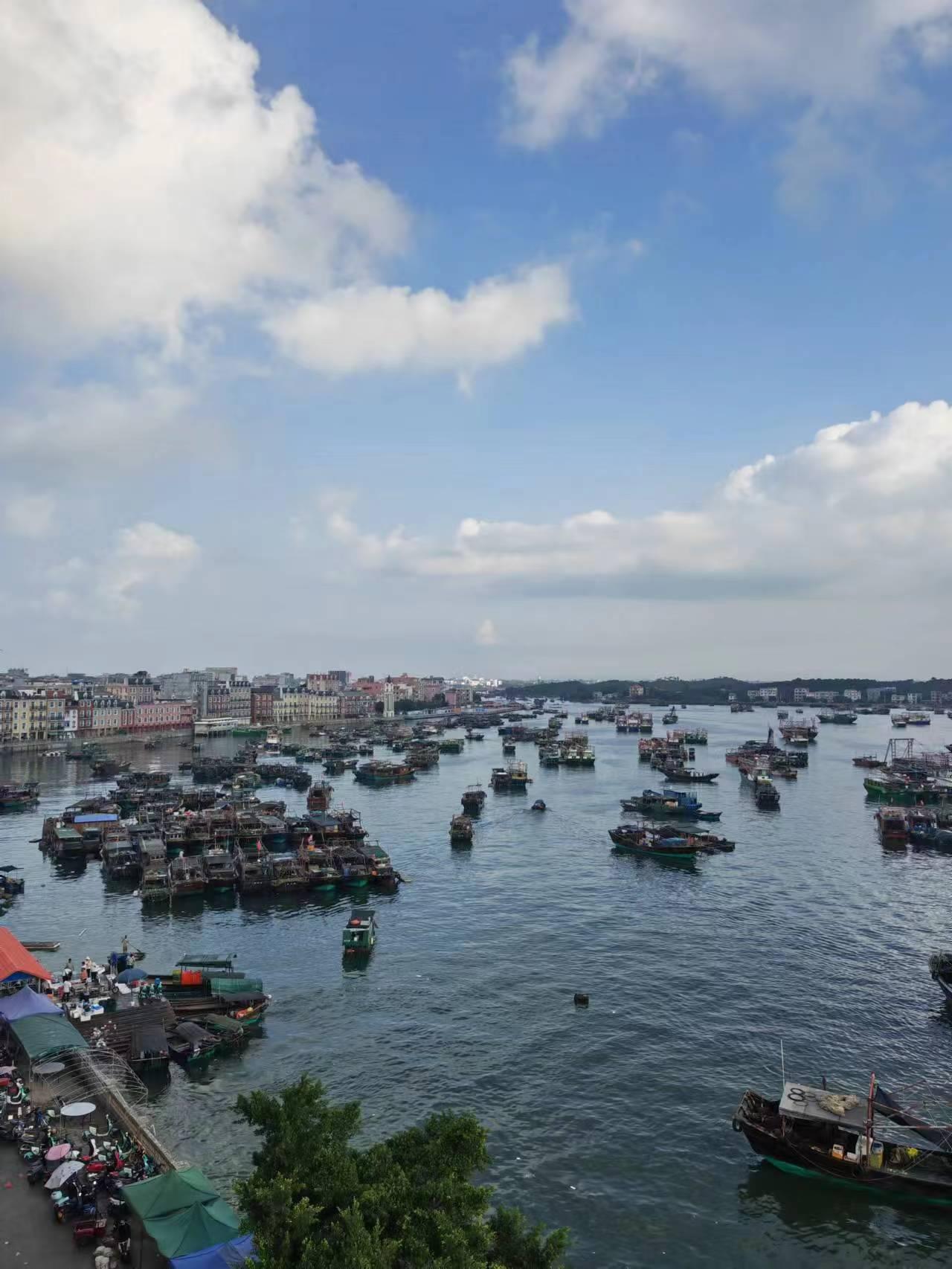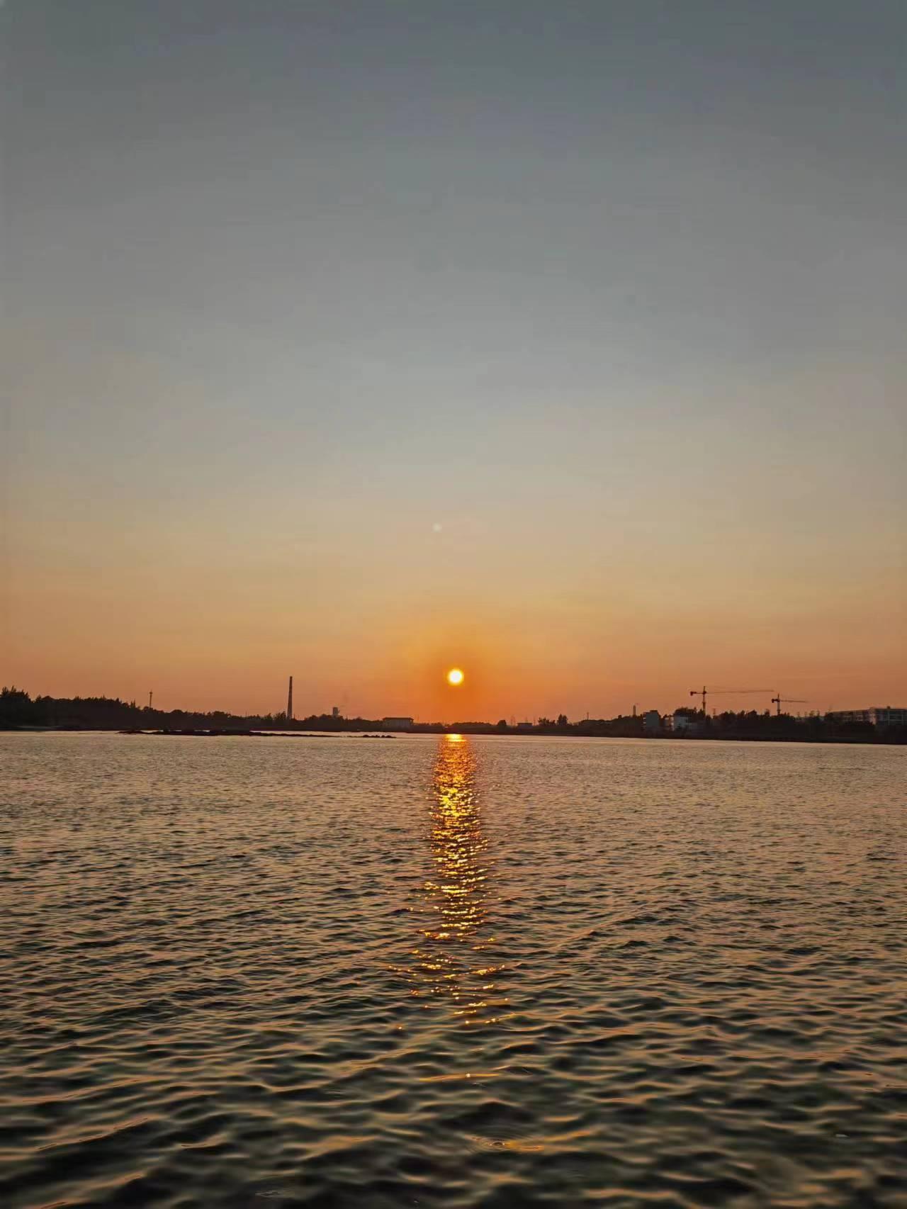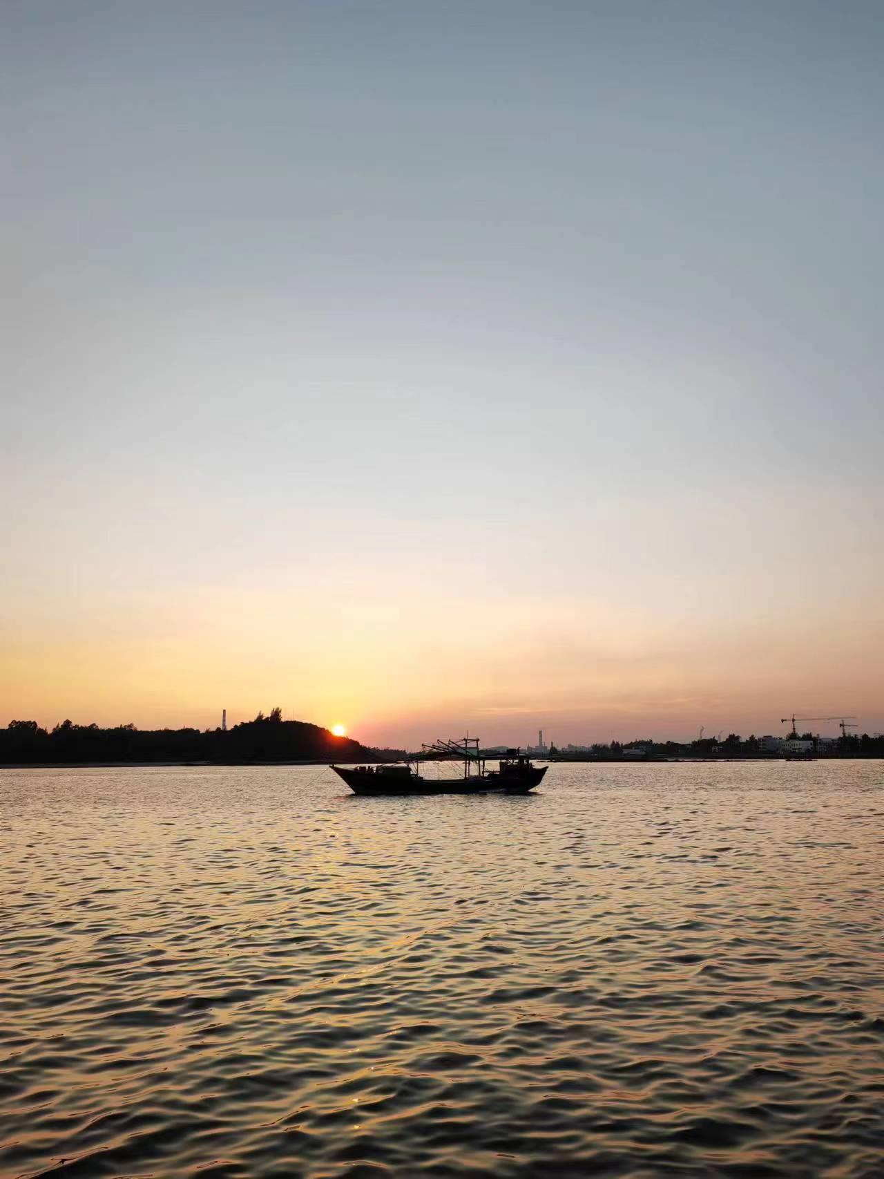 企沙镇的傍晚特别的漂亮,夕阳西下、海风轻抚、游船荡漾。