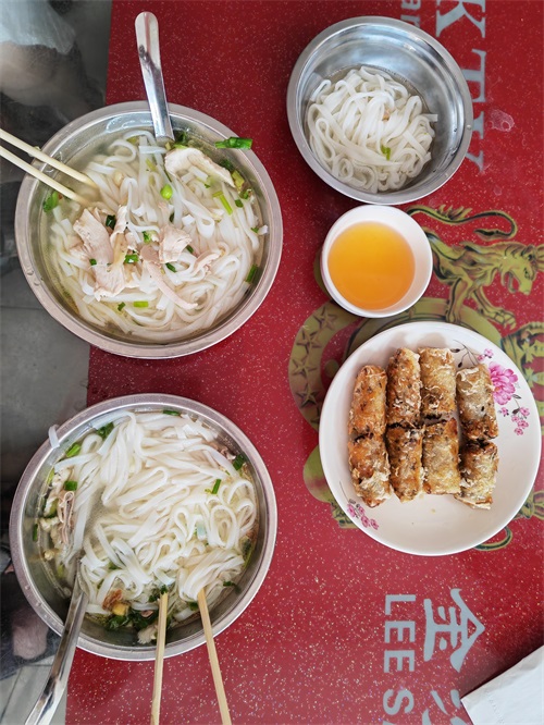 比如我们第二天早上吃的 鸡丝米粉(15元每碗),据说是越南特色菜;