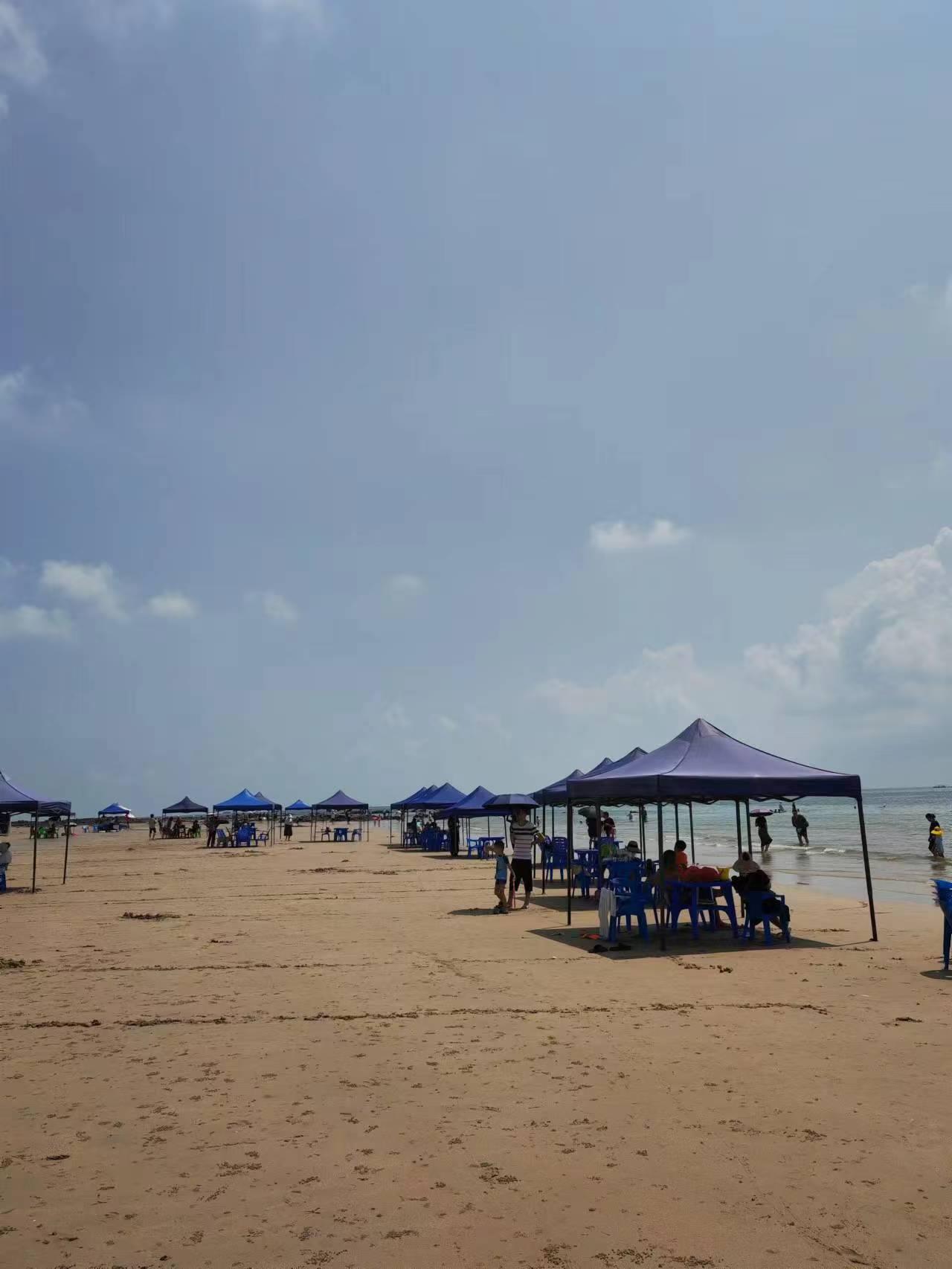 三是这个沙滩也适合赶海,我们碰见几个游客,就是拿着工具专门来赶海,确实抓到了几个海蟹。四是沙滩还有露营基地,我们碰到几家,搭着帐篷,用自己带的锅煮着海鲜。
