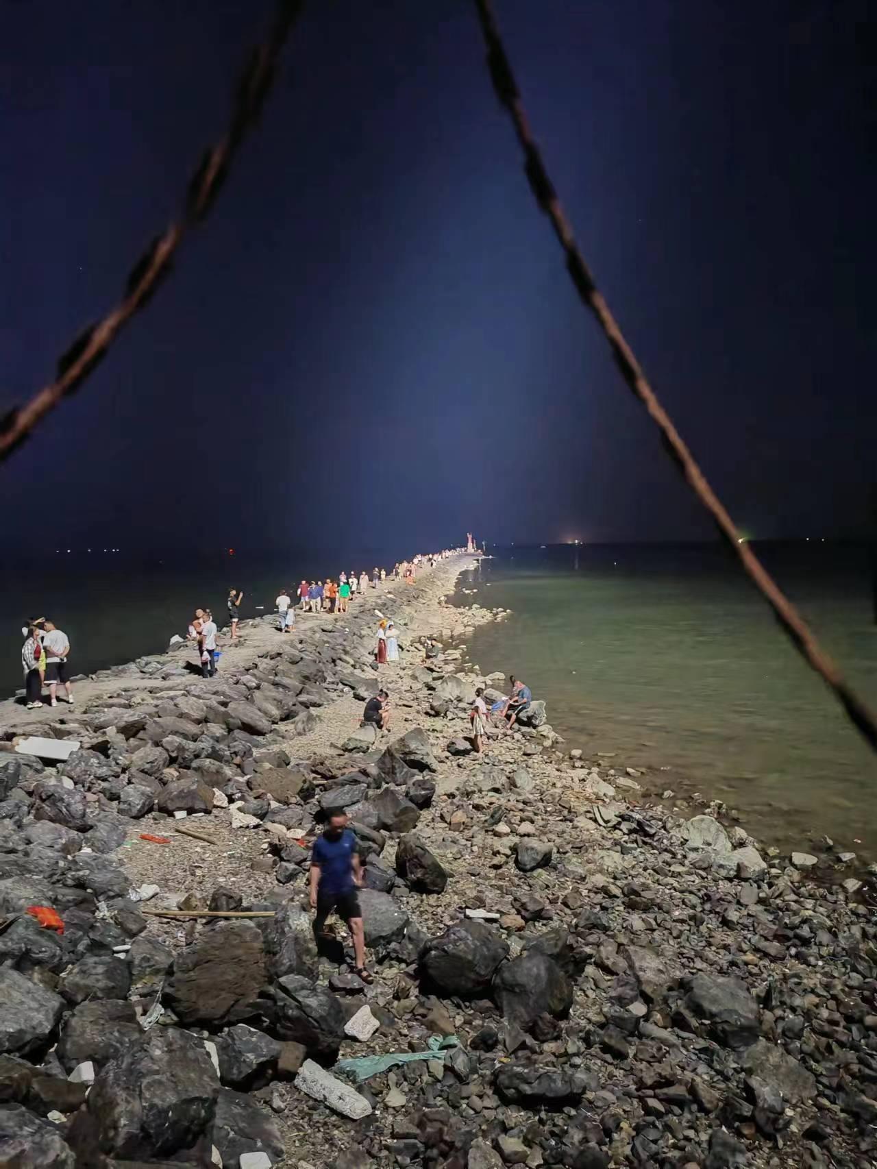 夜晚,沙堤上还有人放烟花,放孔明灯。我们本想也放一个孔明灯,一问才知,沙堤摊贩都不卖这个,要买的话需要去前面的镇上。他们都是从镇上的门店里买来,专门到沙堤附近放的。
